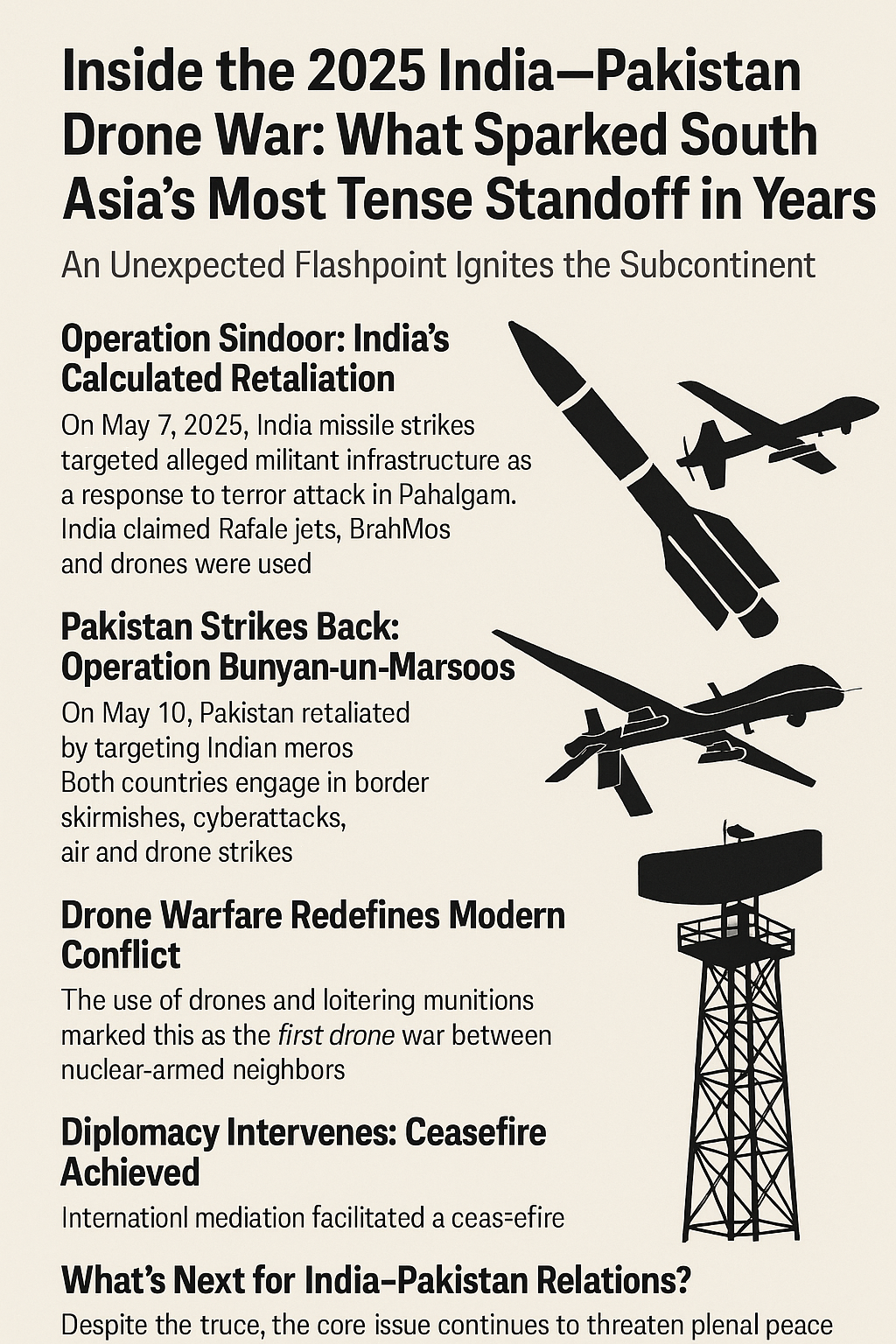 The 2025 conflict, although short-lived, has set a dangerous precedent. With drones, cyber warfare, and missile technology playing central roles, South Asia may now be entering a new era of low-intensity, high-tech conflict.